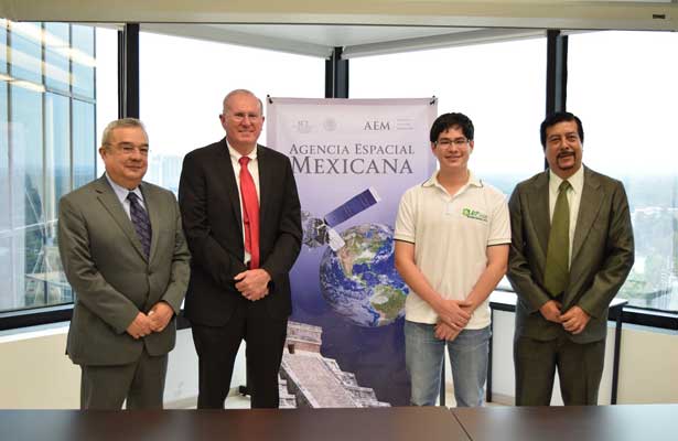En su visita a la AEM, el joven alumno de la Ingeniería en Tecnologías de la Información fue recibido por el director general de la AEM, Javier Mendieta Jiménez, y por el Coordinador General de Formación de Capital Humano en el Campo Espacial, Carlos Duarte Muñoz, quienes lo felicitaron por la gran oportunidad.