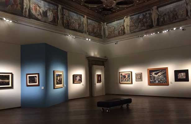 Orozco, Rivera y Siqueiros. La mostra Sospesa se presenta con las 70 piezas que conforman el recorrido expositivo. “De Diego Rivera llevamos obra cubista que incluye Retrato de Maximiliano Volonchine, Maternidad y Mujer sentada en una butaca; de David Alfaro Siqueiros estarán sus bocetos para murales como el de Patricios y patricidas que está en la Secretaría de Educación Pública (SEP), el Tormento de Cuauhtémoc que está en el Palacio de Bellas Artes, así como algunos de los que están en el Castillo de Chapultepec; de José Clemente Orozco se lleva una selección representativa, ya que nuestro recinto posee la colección más grande del artista, con obras como El combate, Cristo destruye su cruz, Puente de Queensboro o Prometeo”.