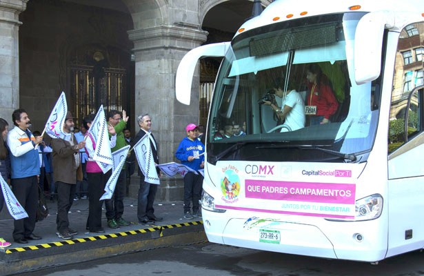 Son 40 las familias que este sábado partieron con destino a Tonatico, Estado de México, para participar en «Qué padres campamentos DIF-CDMX 2018», una iniciativa del Sistema para el Desarrollo Integral de la Familia de la Ciudad de México, cuyo objetivo es el fortalecimiento del vínculo familiar, informó el Jefe de Gobierno, Miguel Ángel Mancera, poco después de haber dado el banderazo de salida.