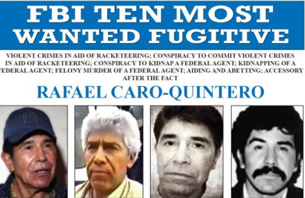 Considerado como el líder del cártel de Sinaloa y buscado por su probable participación en el asesinato del agente especial de la DEA Enrique Camarena Salazar en 1985, la cabeza de Rafael Caro Quintero ahora tiene un precio de hasta 20 millones de dólares.