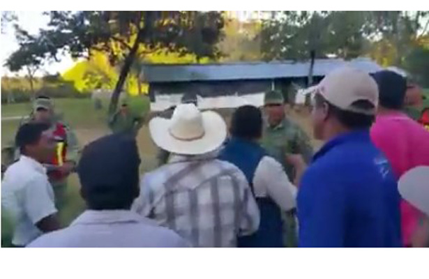 Ya un poco alejados de los militares, los civiles vuelven a exigirles que se vayan de ahí, pero un militar les contesta que ellos están pagando la renta de ese sitio, a lo que los de sombrero contestan que «esa tierra no se renta porque es comunal», y agregan «es mi tierra».