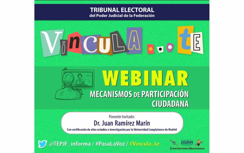 El día de hoy se llevó a cabo el primer webinar “Mecanismos de Participación Ciudadana”, en el marco del lanzamiento del nuevo proyecto paraguas de vinculación social del Tribunal Electoral del Poder Judicial de la Federación (TEPJF), Vincula…te.