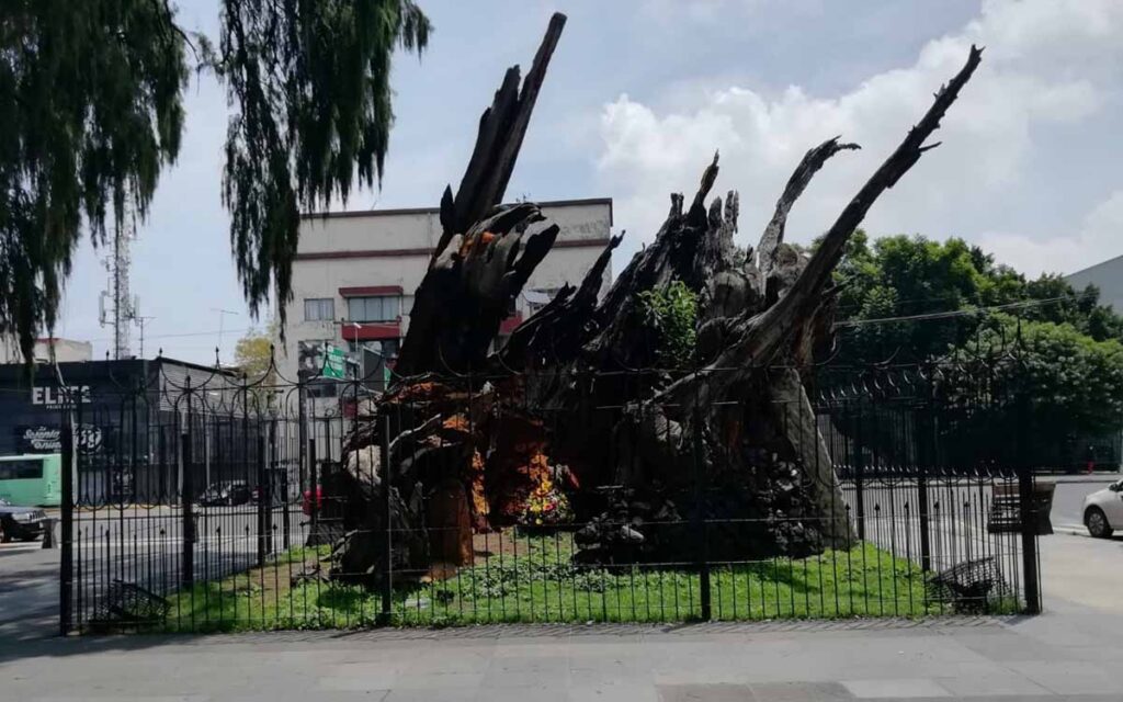 El árbol está a unos 200 metros de la estación Popotla, sobre la calzada México – Tacuba, en la alcaldía Miguel Hidalgo. El ahuehuete ya es prácticamente un cascarón después de tanto tiempo de existencia. Se supone que este tipo de árboles cuyo significado es “viejo del agua” – según la lengua náhuatl — viven entre 500 y 600 años.