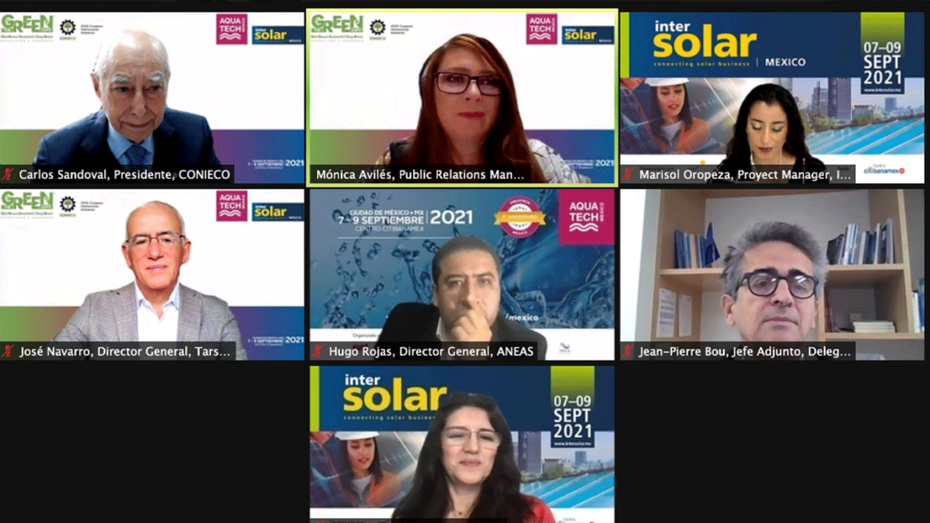 En la conferencia también participaron el presidente del Conieco, Carlos Sandoval; el jefe adjunto de la delegación de la Unión Europea en México, Jean-Pierre Bou; la presidenta de la Asociación Nacional de Energía Solar, Karla Cedano; la gerente de proyecto de Intersolar México, Marisol Oropeza; la directora global de Agua, Annette Bos; y la directora de Aquatech, Editha Hoogenberg.