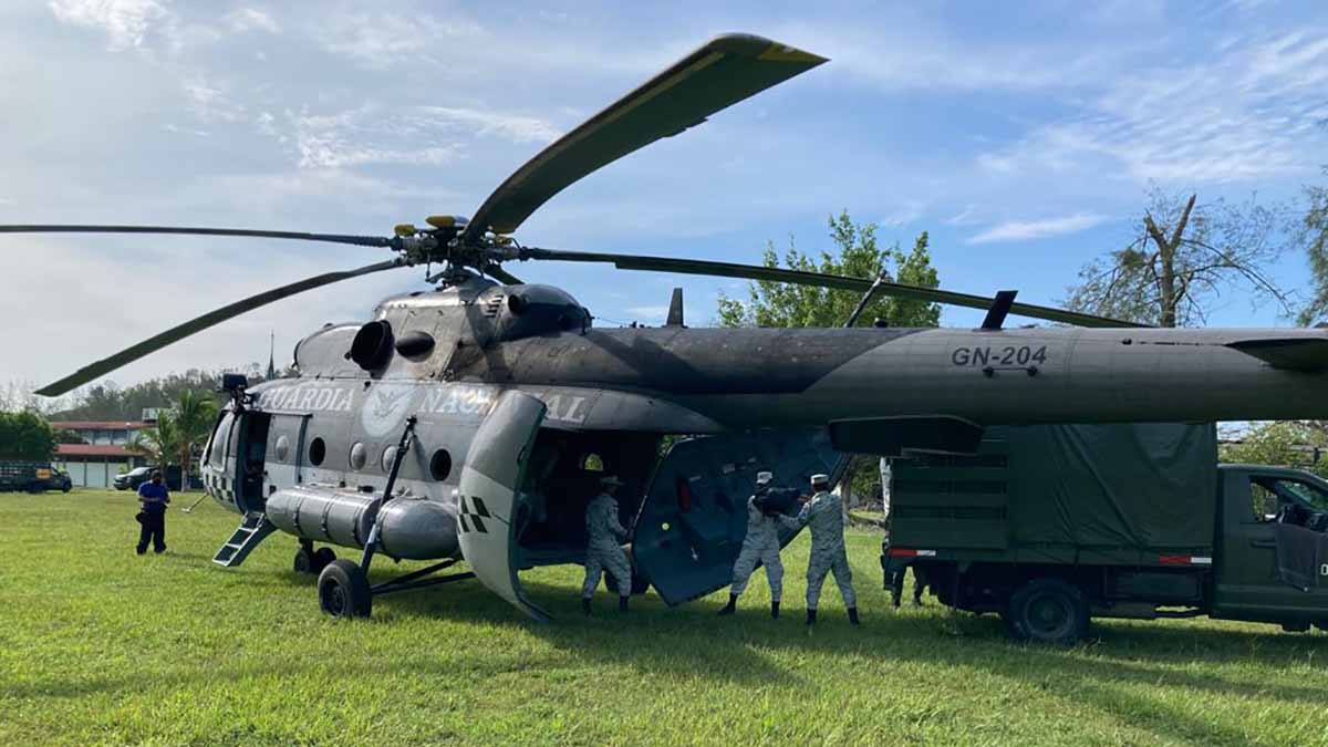 La GN despliega aeronaves para entregar despensas a los poblados más afectados por inundaciones en Veracruz