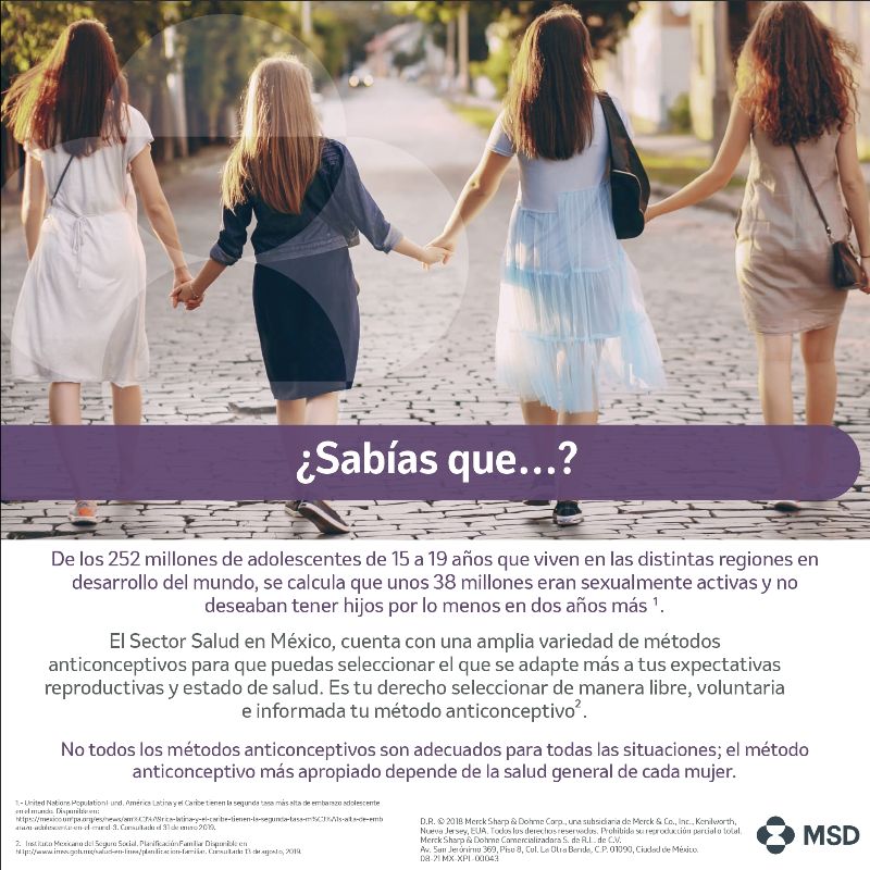 Si no desea quedar embarazada, debe comenzar o continuar usando el método anticonceptivo que le haya prescrito su médico tratante.