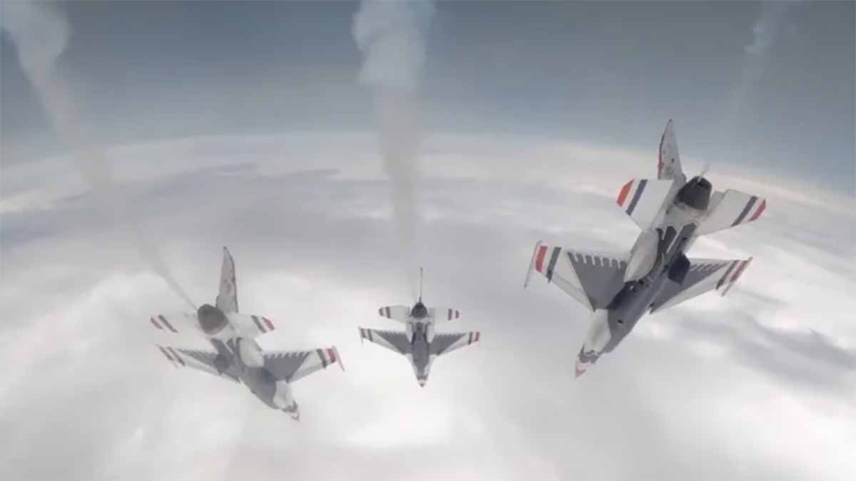 La Fuerza Aérea de EE.UU. compartió este miércoles imágenes tomadas desde la cabina de uno de los aviones de combate F-16 que hacen parte de su equipo de vuelos de exhibición Thunderbirds.