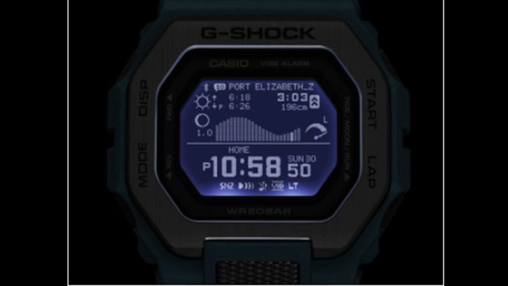 El nuevo G-Shock G-Lide GBX-100-2 sabe lo esencial que es tener la información de la marea a la mano cuando estás practicando deportes acuáticos.