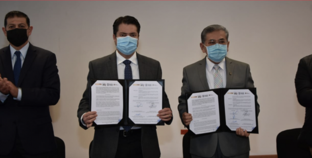 14 diciembre 2021; Saltillo, Coahuila.- El Secretario de Vivienda y Ordenamiento Territorial del Estado de Coahuila de Zaragoza, Enrique Martínez y Morales, firmó un convenio de colaboración  con el Rector de la Universidad Autónoma de Coahuila, Salvador Hernández Vélez, a nombre de la Facultad de Arquitectura.