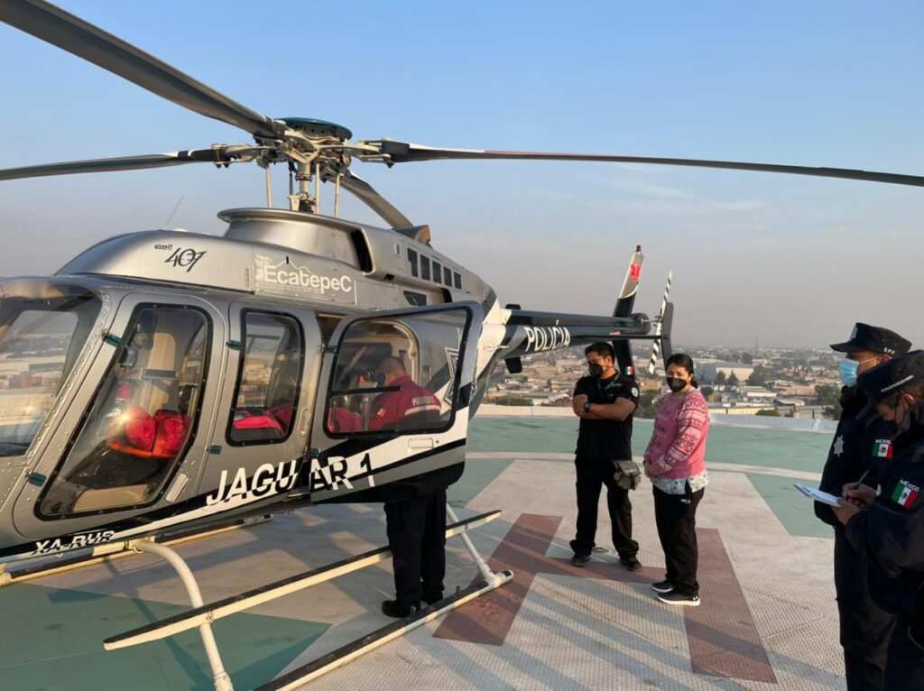 Helicóptero “Jaguar 1” de Ecatepec traslada a mujer con quemaduras en 90% de su cuerpo