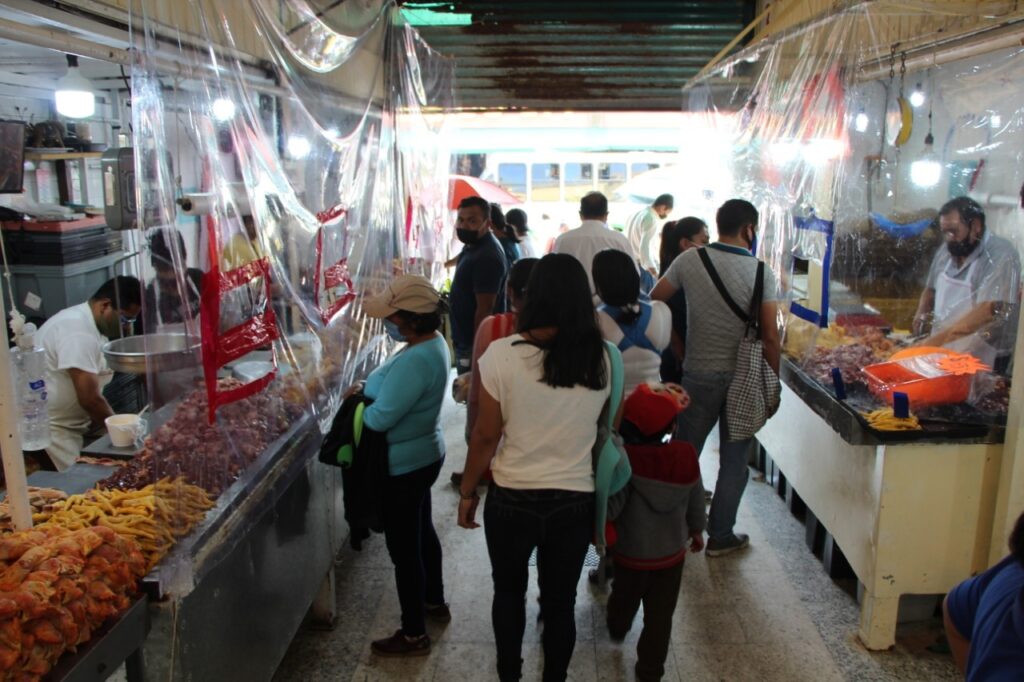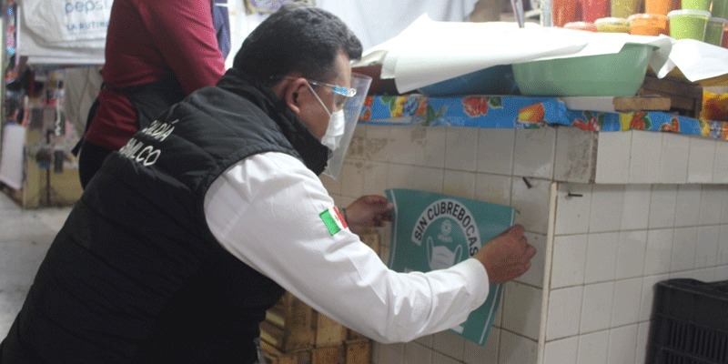 El alcalde José Carlos Acosta Ruíz explicó, en los primeros 100 días de administración, que a través de la Jefatura de Unidad Departamental de Mercados, se priorizaron los protocolos sanitarios por la pandemia por COVID-19, es decir, se exhorta tanto a locatarios como a consumidores a que se tomen la temperatura, así como que usen cubrebocas y gel antibacterial.
