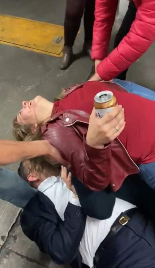 Hay unas fotografías en las que se observa a Galaviz Sosa, recostada en el piso encima de un hombre, pero sin soltar la lata de cerveza.