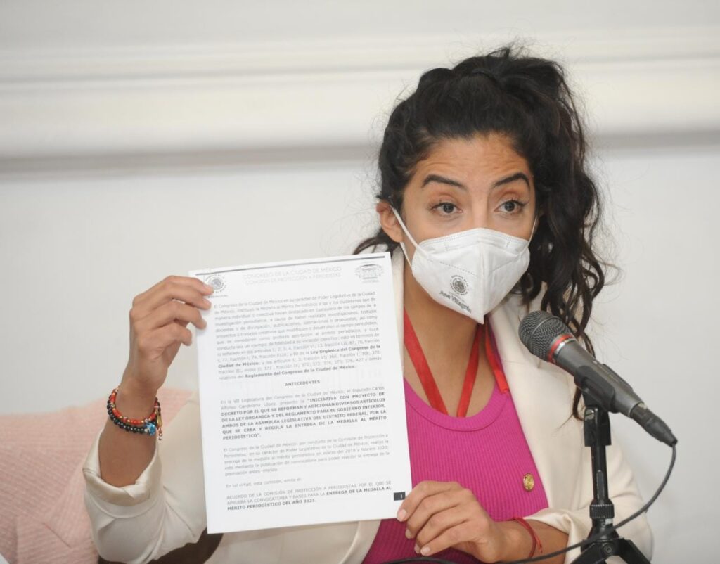 La Comisión de Protección a Periodistas del Congreso de la Ciudad de México presidida por la diputada del PAN, Ana Villagrán Villasana convoca a la sociedad a presentar propuestas de mujeres, hombres, grupos o colectivos de personas que consideren merecedoras de recibir la Medalla al Mérito Periodístico 2021 con el objetivo de reconocer su ejercicio periodístico; mediante el cual contribuyan tanto al desarrollo de la democracia como al mejoramiento económico, social, y cultural de la capital del país.