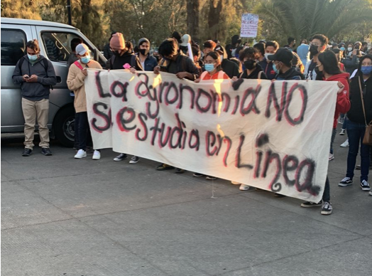 Por ello es que llevaron pancartas donde sostinen que “la gronomía no se estudia en línea”, según dijeron, esta es una escuela donde las carreras necesitan de practicas en campo, por lo que es necesario volver.