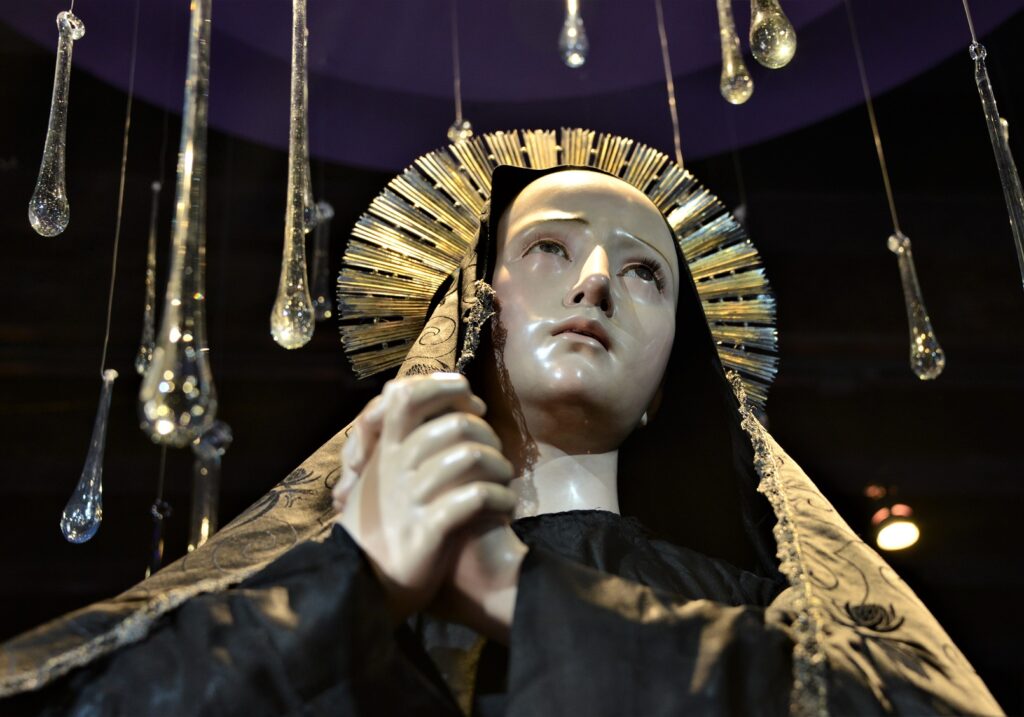 Este montaje conserva la tradición de Semana Santa en diferentes barrios del país para expresar el dolor de laVirgen durante la Pasión y muerte de Jesús.
