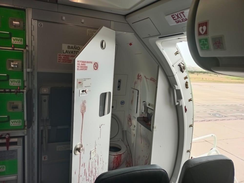 De acuerdo a pasajeros que venían en ese vuelo, un pasajero se encerró en el baño y, al parecer, sufrió una crisis nerviosa lo que lo llevó a provocarse severas lesiones.