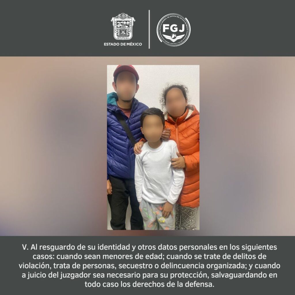 HUEHUETOCA, EdoMéx.- Resultado de un operativo desplegado en el municipio de Huehuetoca, en el que participaron elementos de la Fiscalía General de Justicia (FGJEM), de la Secretaría de Seguridad Estatal (SS) y de la Policía Municipal, fue rescatado un niño de 9 años, que habría sido secuestrado en esta demarcación el pasado 10 de octubre, además fueron detenidas siete personas, cuatro hombres y tres mujeres, una de ellas menor de edad, investigadas por este hecho delictivo.