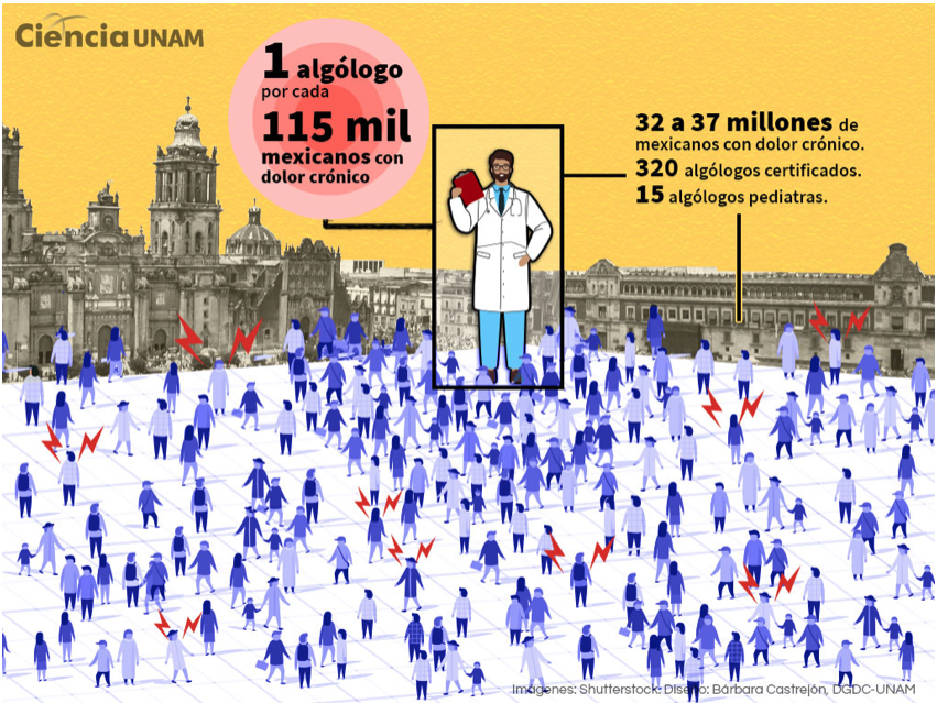 Sin embargo, pese a ser una especialidad que ha buscado abrirse camino desde hace algunas décadas, aún es poco conocida entre el propio gremio médico y a pesar del crecimiento que ha tenido hasta el momento, sólo se tienen registrados 320 médicos algólogos certificados por el CNCA. Esta cifra resulta reveladora, ya que si se considera que existen alrededor de 25 a 29% de mexicanos con dolor crónico, es decir, entre 32 y 37 millones, eso significaría que en promedio existe un algólogo por cada 115 mil mexicanos con este padecimiento.