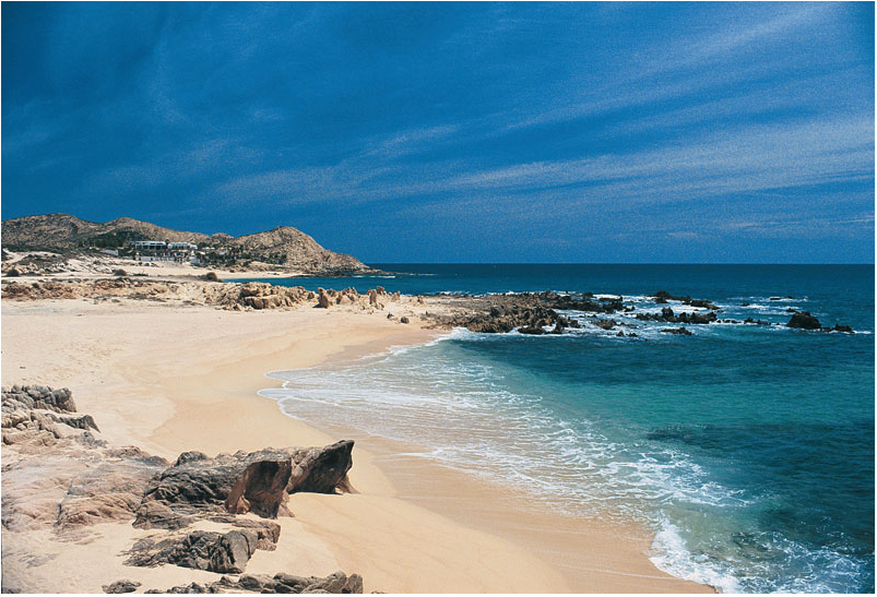 Playa El Médano: Se encuentra en el corazón de Cabo San Lucas y resalta por su arena blanca y suave, así como por su energía contagiosa y llena de vida al estar rodeada de diversos restaurantes y bares. Desde aquí se tienen vistas panorámicas al Arco, lo que le da un fondo especial al voleibol playero y al parasailing que practican sus visitantes.