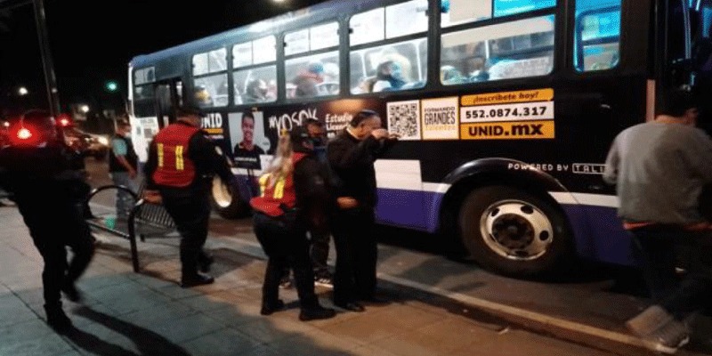 En transporte público y estudiantil elementos policiacos realizan revisiones.
