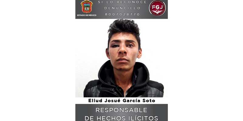 NAUCALPAN, EdoMéx.- El representante social de la Fiscalía Especializada de Homicidio del Valle de Toluca, de la Fiscalía General de Justicia del Estado de México (FGJEM), consiguió una sentencia condenatoria de 40 años de prisión para Eliud Josué García Soto, tras acreditar su participación en el asesinato de un elemento de la Policía Estatal, en Naucalpan, en el año 2019.