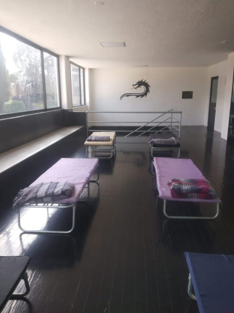 Cuenta con 20 camas habilitadas para pernoctar la noche y se les proporcionará cobijas, guantes, gorritos para el frío, alimentos calientes y baño con agua caliente.