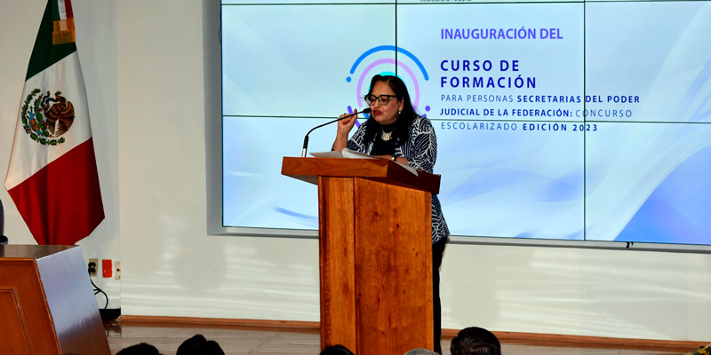 Lo anterior, durante la inauguración del curso de Formación de Personas Secretarias del Poder Judicial de la Federación (PJF) que tuvo lugar hoy en el auditorio de la Escuela Federal de Formación Judicial (EFFJ).