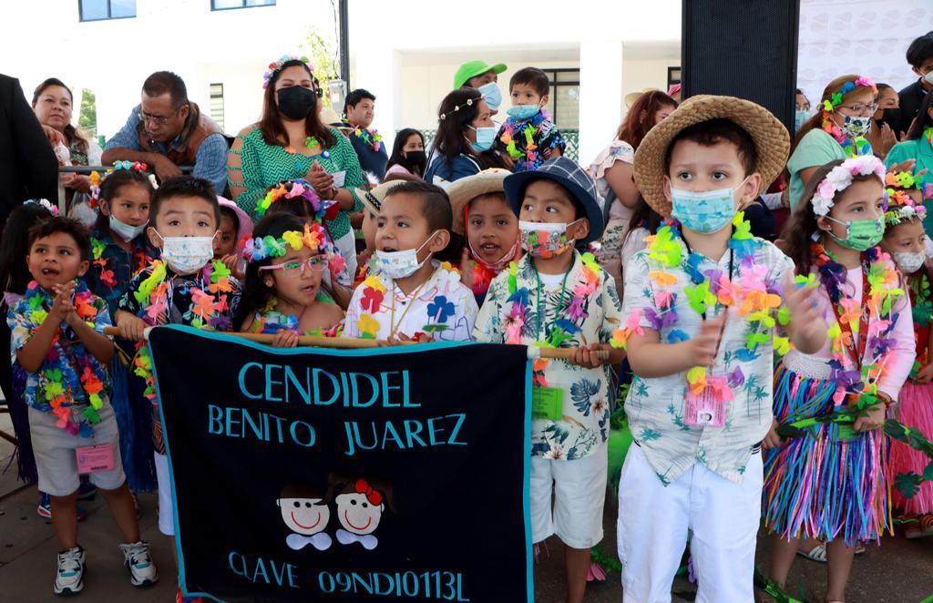 En el marco de la conmemoración del CCXVII Aniversario del Natalicio de “Benito Juárez García”, miles de personas adultas engalanadas en trajes típicos de la región, familias enteras, mujeres, hombres, jóvenes, así como niñas y niños de los CENDIS con sus triciclos adornados con flores y globos participaron en el desfile junto con la presidenta del Patronato Teresa Vanegas Tapia.