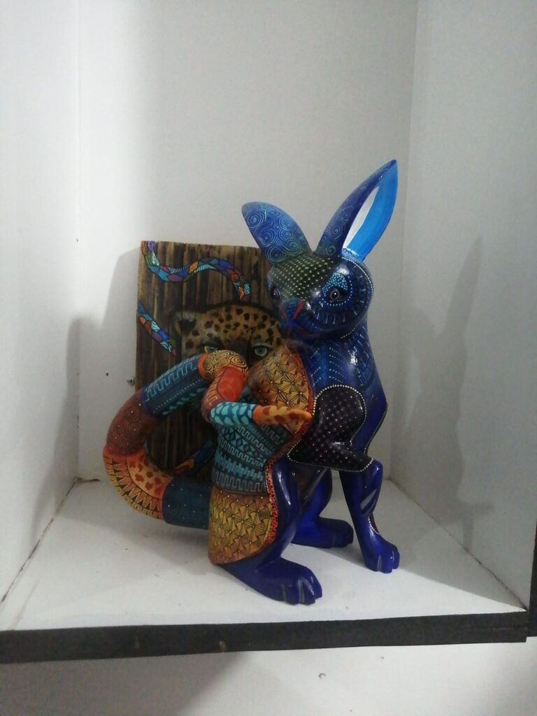 Con estas ideas, el artista oaxaqueño Gabriel Sosa Ortega empezó a desarrollar su propio estilo y es así como, a través de la talla tradicional de madera, elabora una versión de alebrijes “al estilo Tilcajete”, comentó orgulloso, ya que sus figuras destacan por estar elaboradas con maderas de copal y tropicales rescatadas de los ríos y el mar.