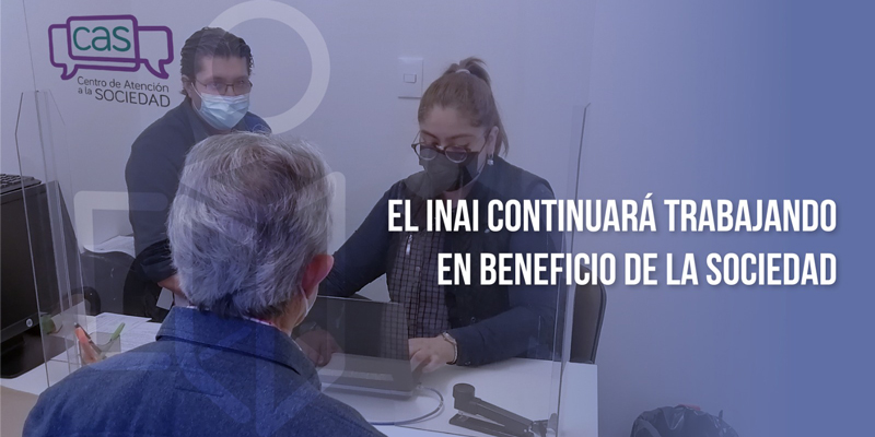 El INAI sigue funcionando: brinda asesoría respecto a los derechos que tutela, por medio del Tel INAI, 800 835 4324; a través del Centro de Atención a la Sociedad (CAS), ubicado en el edificio sede del Instituto, en Insurgentes Sur 3211, colonia Insurgentes Cuicuilco, Ciudad de México, y por correo electrónico, en atencion@inai.org.mx.