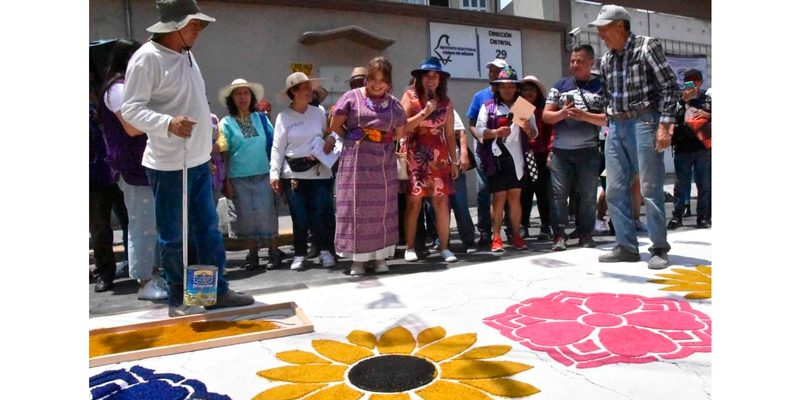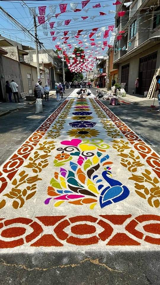 “Son tapetes coloridos de aserrín con distintas figuras representativas, con semillas, papel picado, flores, con los que las familias transforman sus calles con cariño al plasmar su arte urbano ante la devoción de la Santa Cruz y con la que realizan un tradicional recorrido en las calles del pueblo de Santa Cruz Meyehualco”, señaló.