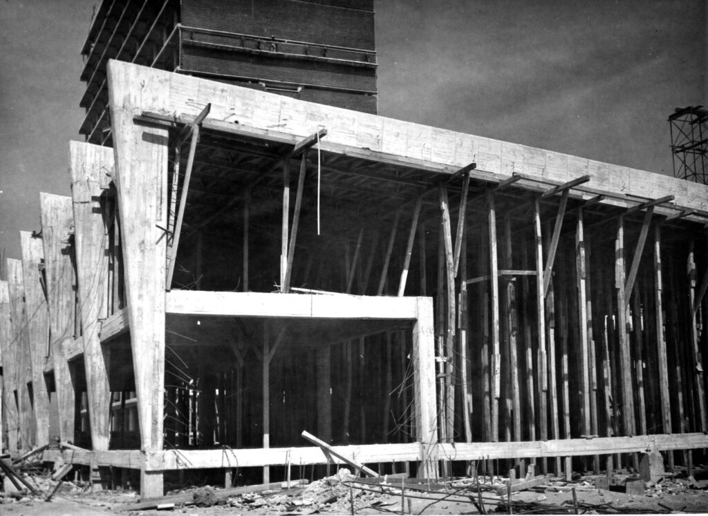Construcción del auditorio de la Facultad de Ciencias (en 1952), hoy Auditorio Alfonso Caso.