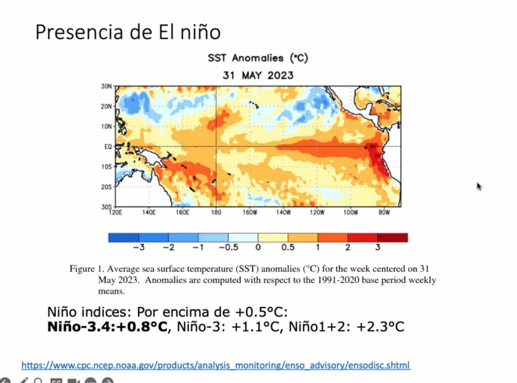 En la actualidad es incierto hacer el pronóstico del desarrollo de El Niño este año. “Hasta la fecha, tiene una magnitud menor que los eventos más intensos de los últimos 41 años, así que no se puede afirmar que estemos ante un evento Niño de intensidad excepcional”.