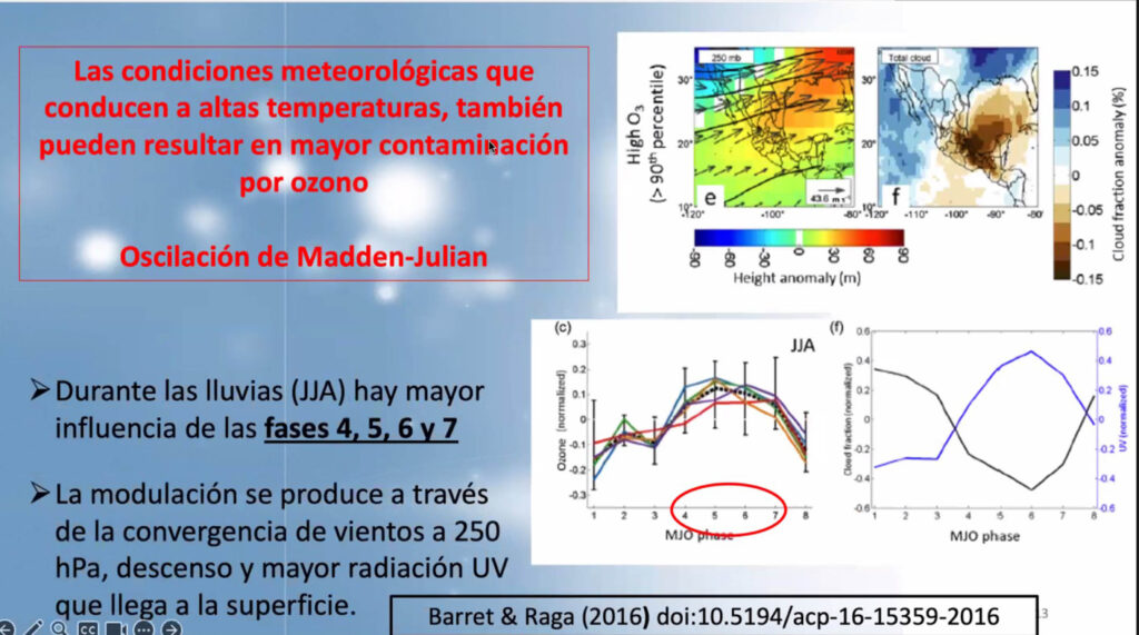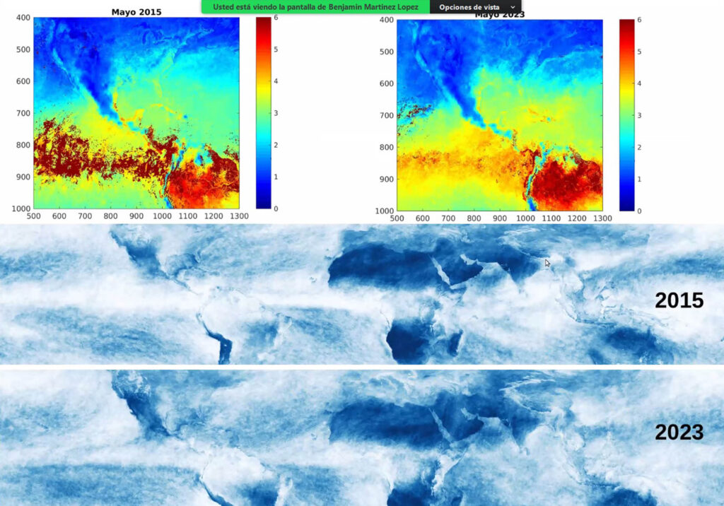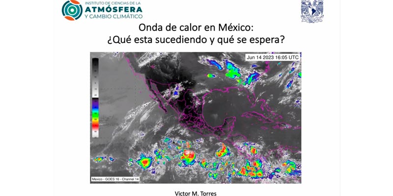 Benjamín Martínez López, del Departamento de Ciencias Atmosféricas, al referirse a las condiciones oceánicas recientes mencionó que la información disponible sugiere que una celda meridional de convección regional podría estar relacionada con las altas presiones persistentes responsables de las olas de calor recientes.