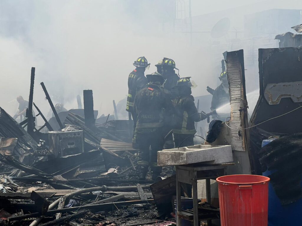 Incendio consume casitas ubicadas a un costado de vías férreas, en la colonia Atlampa