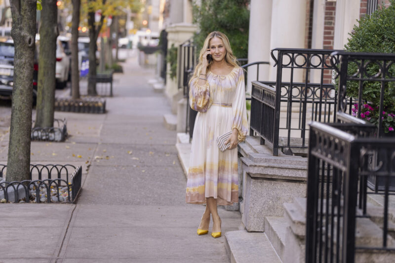 4. La moda como forma de expresión: La serie continúa siendo un escaparate de moda y estilo, los personajes nos enseñan que la moda es una forma de expresión personal. Nos muestran cómo la misma ropa puede tener diferentes significados para nosotros. En este primer episodio de la segunda temporada vemos como el icónico vestido de bodas de Carrie ayuda tanto recordar como a tener un cierre en su pérdida y poder crecer como persona.