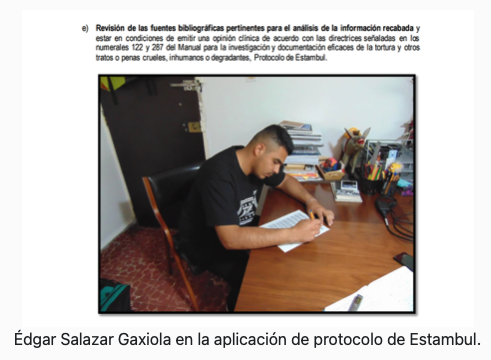 Edgar Salazar Gaxiola, en el examen médico del protocolo de Estambul.
