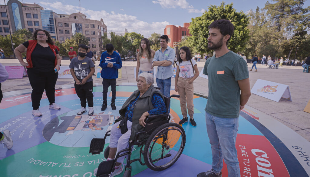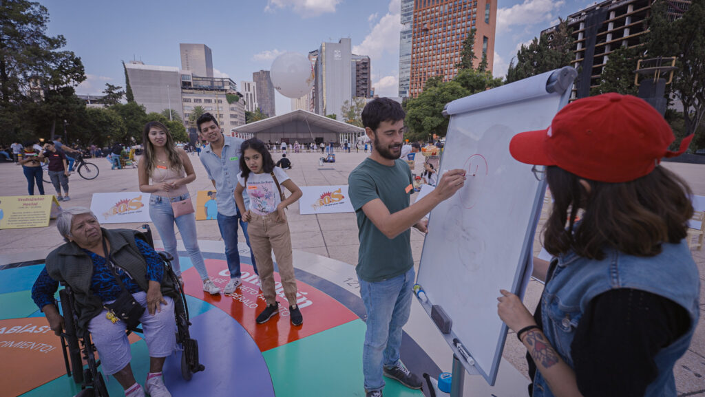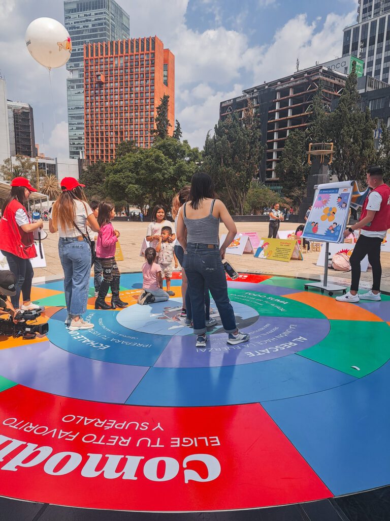 Desde temprano la explanada del monumento se fue llenando de niños, jóvenes y adultos, quienes decidieron romper la cotidianidad y convertirse por un día en un trabajador humanitario. Las personas tuvieron la oportunidad de ir moviéndose por un tablero gigante para superar distintos retos en equipo y poder salvar vidas simulando roles como el de un explorador de terreno, una logista, un médico cirujano, una médica general, una partera, un experto en abastecimiento y saneamiento de agua, una enfermera o un trabajador social. Cabe señalar que este es un juego inclusivo y que no se gana de manera individual: ¡todos los participantes tienen que ayudar para superar la misión!
