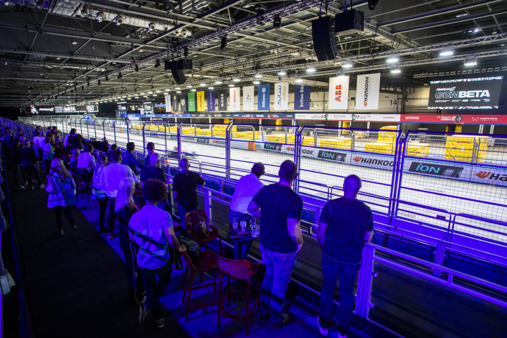 La recta cubierta es parte de la pista de 2.09 km que es única en el automovilismo mundial que se extiende dentro y fuera del ExCeL de 100,000 m2 en el área de Docklands del este de Londres, que albergará las dos últimas carreras del ABB FIA Formula E World Championship, este sábado y domingo.