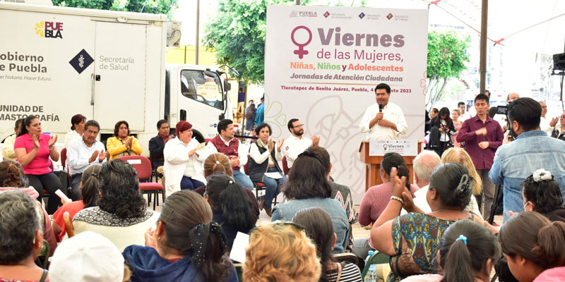 TLACOTEPEC DE BENITO JUÁREZ, Pue.- Como parte de las acciones que emprende el gobierno presente de Sergio Salomón para atender, prevenir y erradicar la violencia contra las mujeres, las secretarías de Gobernación, Salud y Trabajo, llevaron a cabo el relanzamiento de la jornada “Viernes de las Mujeres”, con el objetivo de acercar los servicios que ofrecen dichas dependencias, a los 50 municipios que tienen Declaratoria de Alerta de Violencia de Género contra las Mujeres (DAVGM), así lo dio a conocer el titular de la SEGOB, Javier Aquino Limón.