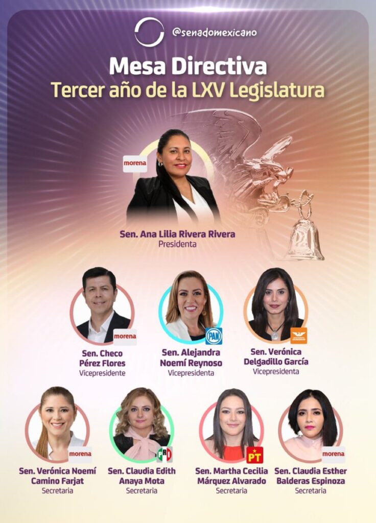 Asimismo, se eligió como vicepresidentes a Sergio Pérez, de Morena, Alejandra Reynoso, del PAN, y Verónica Delgadillo, de MC; en tanto que como secretarias a las senadoras Claudia Edith Mota, del PRI y Claudia Balderas, de Morena.