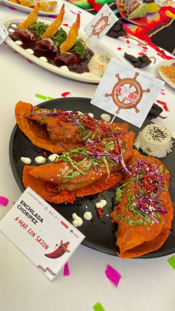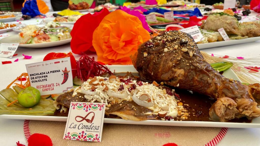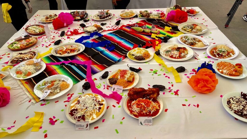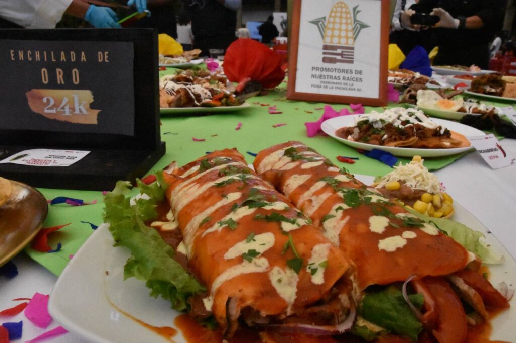 “Vamos a encontrar enchiladas rellenas de carnitas, huitlacoche, pollo, mariscos, al pastor, en nogada, guajolote, conejo, birria, chicharrón, vegetarianas, salsas de mango, mole poblano, pasilla, jamaica, frutos rojos, pétalos de rosa, maracuyá, adobos únicos y preparaciones representativas de otros estados de la República como Michoacán, Guerrero, Oaxaca, Puebla y algunas alcaldías participantes”, dijo.