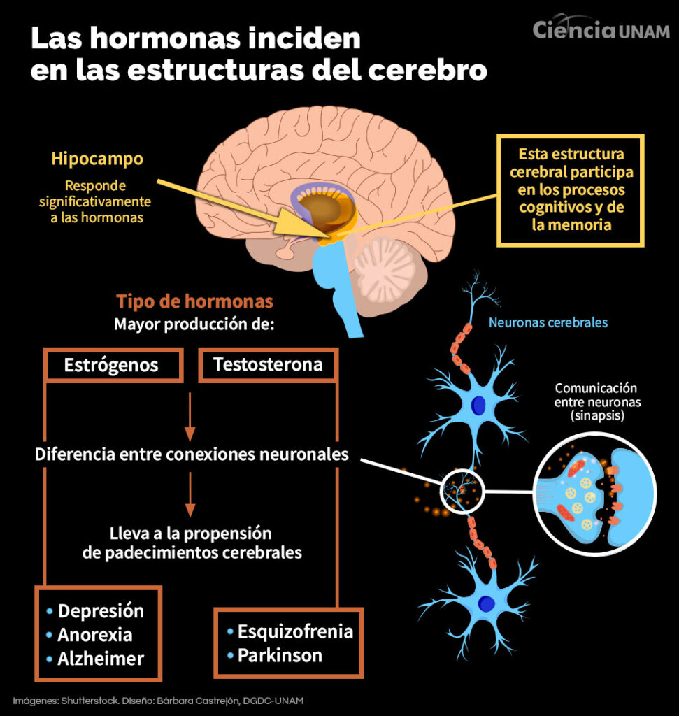 Una diferencia muy importante entre ambos sexos es el tipo de hormonas, ya que estas inciden en el desarrollo de las estructuras del cerebro.