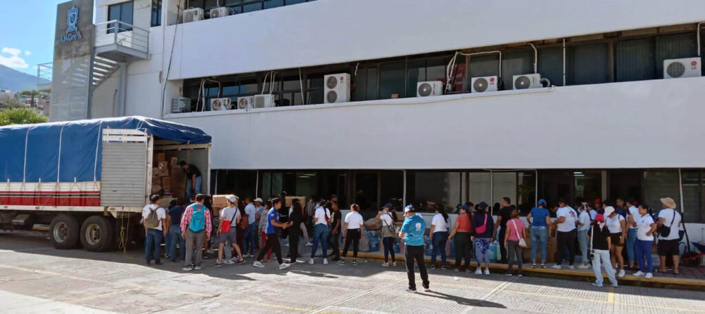Gracias a la solidaridad y generosidad de los universitarios y de la sociedad, el Centro de Acopio “UNAM Solidaria”, ubicado en el Estadio Olímpico Universitario, entregó 802 toneladas de ayuda humanitaria a la Universidad Autónoma de Guerrero (UAGro), para su distribución a la población de Acapulco y otras comunidades afectadas por el huracán Otis.