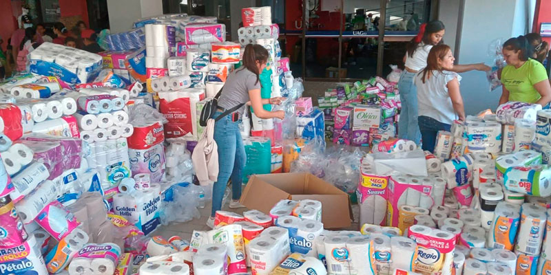 En esos 38 días, entre otros muchos artículos de primera necesidad, se recibieron y entregaron a las autoridades de la UAGro:  20 mil 491 kilos de arroz; 14 mil 590 kilos de frijol; 5 mil 288 kilos de azúcar; 48 mil 190 kilos de jabón en polvo; 113 mil 002 latas y sobres de atún; 10 mil 909 latas de sardina; 162 mil 606 botellas y garrafones de agua; 52 mil 883 litros de cloro; y 126 mil 969 piezas de papel higiénico.