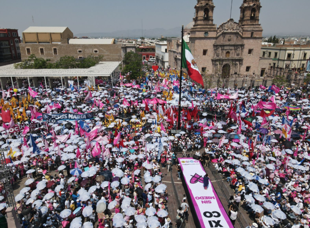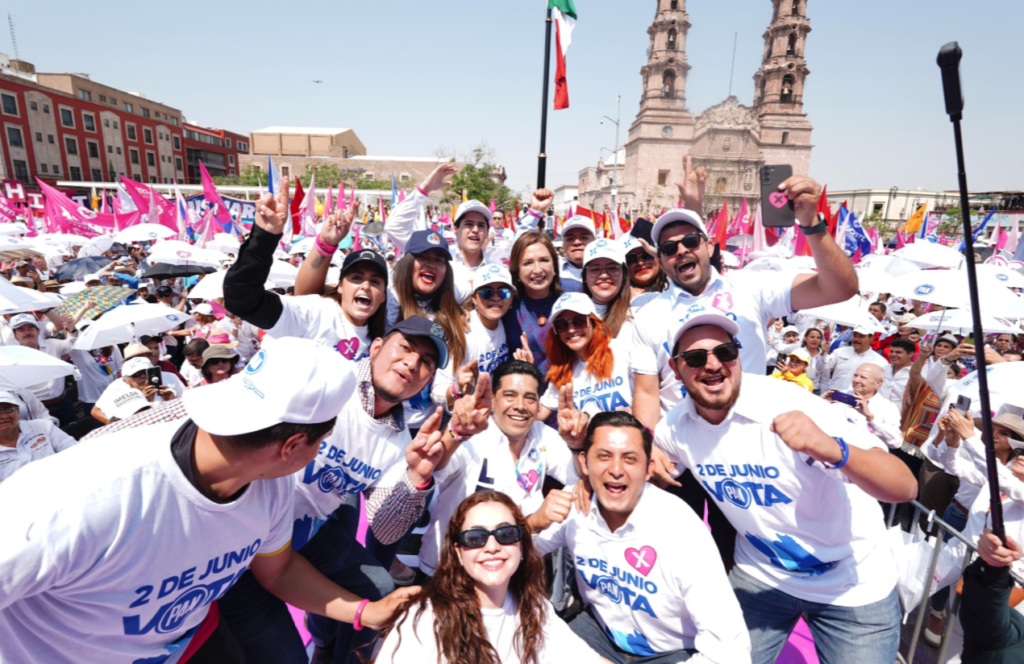 “Van a tener a la Presidenta más valiente que nunca han tenido. Una mujer que tiene agallas, que los va a cuidar. Una mujer que va a meter orden en el país. Así como lo ven. Yo no les tengo miedo, porque no se vale que nuestros jóvenes, no se vale que nuestros jóvenes tengan miedo de salir a la calle. No se vale que las mamás tengamos miedo de que nuestros hijos salgan a la calle ¡Ya basta! ¡Ya se acabó! ¡Ya se les acabó la fiesta a los delincuentes! Vamos a ganar y vamos a ordenar el país”, dijo.