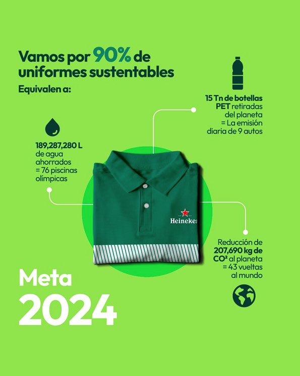 1. Uniformes circulares: Esta iniciativa tiene la finalidad de recuperar los residuos plásticos para producir material textil que pueda ser utilizado en la elaboración de uniformes, playeras y pantalones para los colaboradores de la compañía. La meta durante el 2024 será lograr el 90% de implementación de esta práctica a nivel nacional, lo que equivale a una reducción de 207,690 kg.