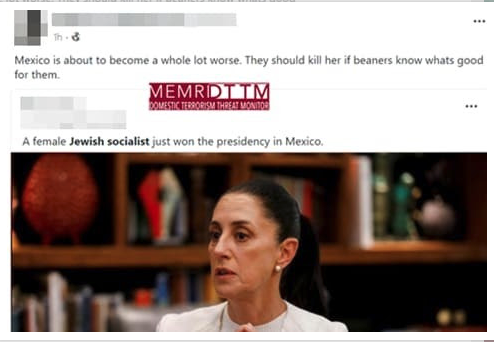En una publicación amenazadora del 3 de junio, un usuario neonazi de Gab escribió: “México está a punto de volverse mucho peor. Deberían matarla si los “frijoleros” saben lo que es bueno para ellos”.