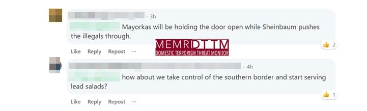 Un usuario de Gab comentó: “Mayorkas mantendrá la puerta abierta mientras Sheinbaum empuja a los ilegales”.