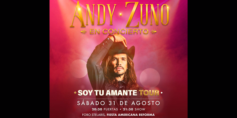 El sábado 31 de agosto el acceso para “Soy tu Amante Tour” será a partir de las 20:30 horas y el show comenzará a las 21:30 horas. Los boletos ya están a la venta en la página de gooliive: https://www.goliilve.com/andy-zuno-soy-tu-amante